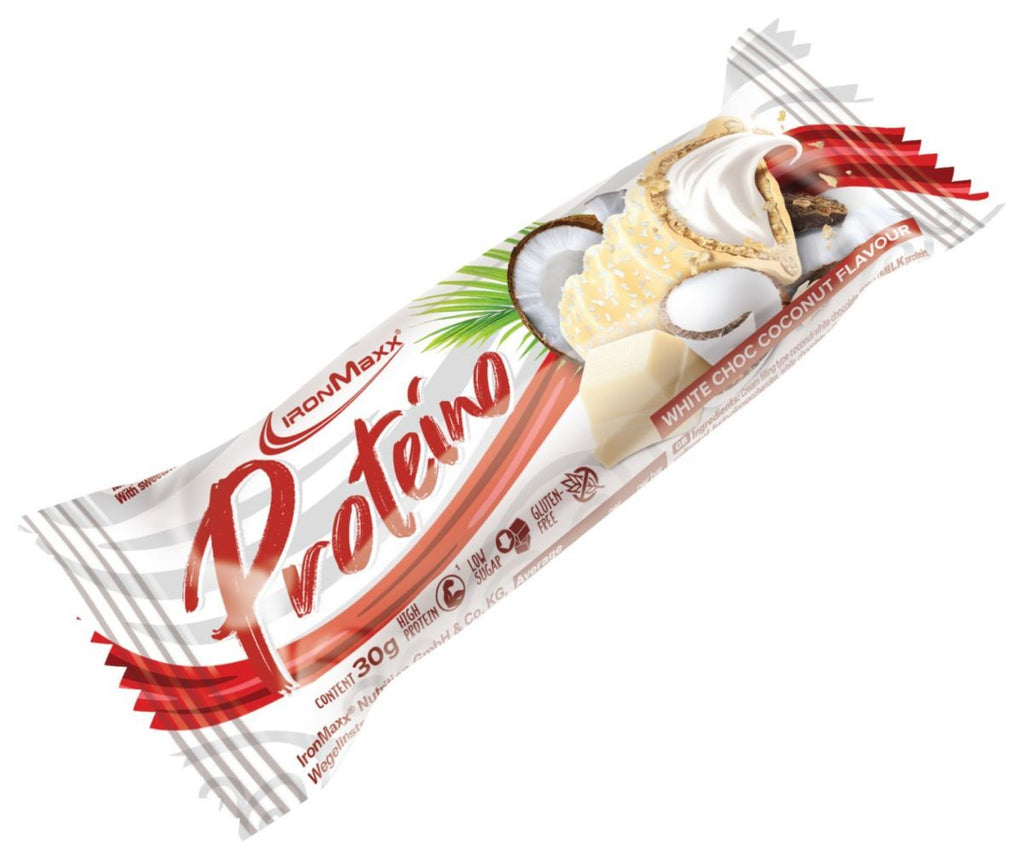 White Choc Coconut skonis: Grietinėlės įdaro kokosų baltasis šokoladas (56%) (PIENO baltymai, saulėgrąžų aliejus, fruktooligosacharidai, baltasis šokoladas su saldikliais (6,8%) (kakavos sviestas, nenugriebto PIENO milteliai, emulsiklis (lecitinas (SOJOS)), saldiklis (maltitolis), natūralus vanilės skonio), kolageno hidrolizatas (jautiena), nenugriebto PIENO milteliai, kakavos sviestas, emulsiklis (lecitinas (SOJOS)), vanilės ekstraktas, saldiklis (sukralozė), natūralus kokoso skonis), baltasis šokoladas su saldikliais (11,9%) (kakavos sviestas, emulsiklis (lecitinas (SOJOS)), nenugriebto PIENO milteliai, saldiklis (maltitolis), natūralus vanilės skonis, kolageno hidrolizatas (jautiena), kakavos sviestas, PIENO baltymai, ryžių miltai, bulvių krakmolas, tarkuotas kokosas (0,6%), kukurūzų krakmolas, saulėgrąžų aliejus, emulsiklis (lecitinas), quinoa miltai, kildinimo medžiaga (natrio bikarbonatas, amonio bikarbonatas).