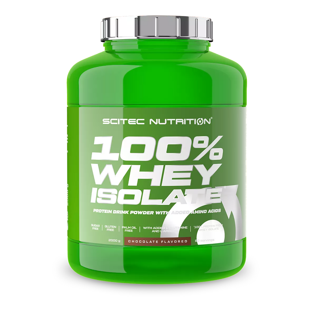Scitec 100% Whey Isolate – tai 100% pieno išrūgų izoliatas, pagamintas siekiant pačios aukščiausios baltymų koncentracijos, kuri optimaliausiai padėtų auginti bei išsaugoti raumenų masę. Baltymas, sudarytas iš 100% išrūgų izoliatų, turi unikalią aminorūgščių pasisavinimo savybę – išrūgų peptidai yra aktyviai transportuojami į kraują ir greitai pasiekia raumenis. Greitesnis ir geresnis aminorūgščių pasisavinimas reiškia greitesnį raumenų augimą. Šis ir taip aukštos kokybės baltymas dar papildomai praturtintas L-Glutaminu. 100% išrūgų izoliatas beveik neturi laktozės, riebalų ir angliavandenių. Be to, šis baltymas yra ypač lengvai išmaišomas ir pasižymi geru skoniu.
